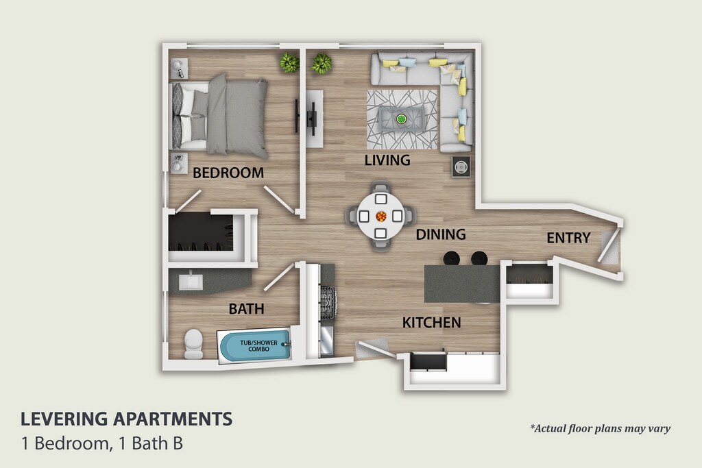 1 Dormitorio, 1 Baño, 750 pies²Disponible AhoraGalería del Modelo