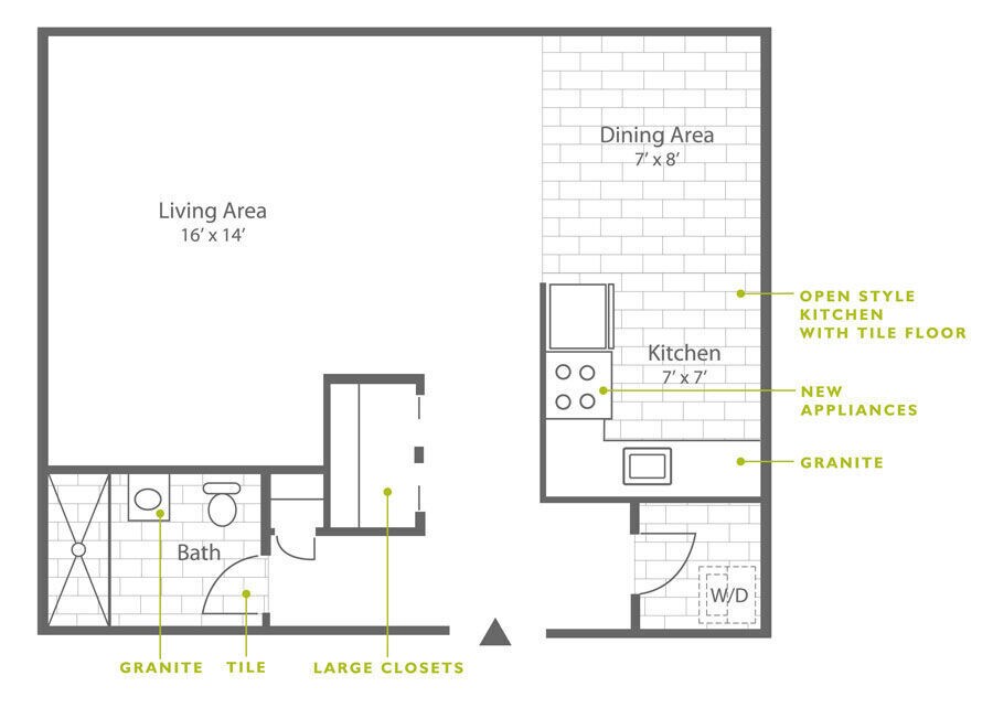 Modelo de apartamento: Studio | 1 BathEstudio, 1 Baño, 380 sq ftNo DisponibleStudio | 1 Bath - Plano 1 1 Dormitorio