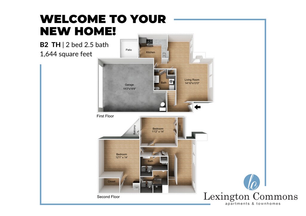 Modelo de apartamento: B2 Town Home2 Dormitorios, 2.5 Baños, 1644 sq ftDisponible Ahora![]()