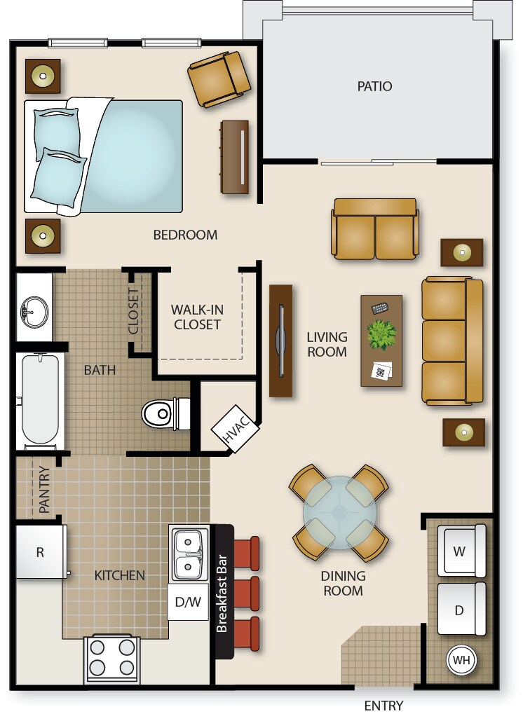 Modelo de apartamento: Eola$1,2691 Dormitorio, 1 Baño, 676 sq ftDisponible Ahora![]()
