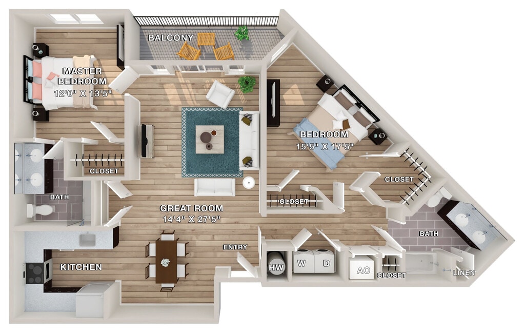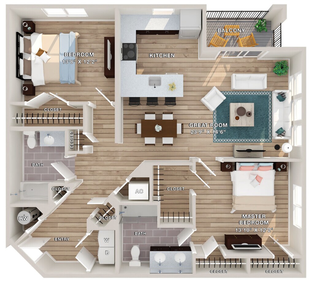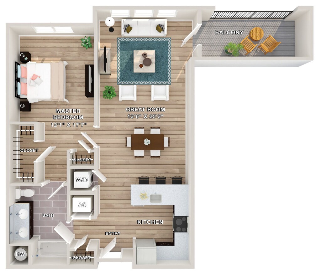 Modelo de apartamento: AndrewDesde $2,3221 Dormitorio, 1 Baño, 820 sq ftDisponible AhoraLos planos de la planta son una interpretación artística. Todas las dimensiones son aproximadas. Los tamaños o el detalle del producto real y sus especificaciones pueden variar. No todas las características están disponibles en todos los hogares para rentar. Los precios y la disponibilidad están sujetos a cambios. El alquiler que se muestra es mensual. Se pueden aplicar ciertos cargos, por ejemplo, entrega de paquetes, recolección de basura, agua, servicios, etc. Depositos varian. Consulta a un representante para conocer detalles.