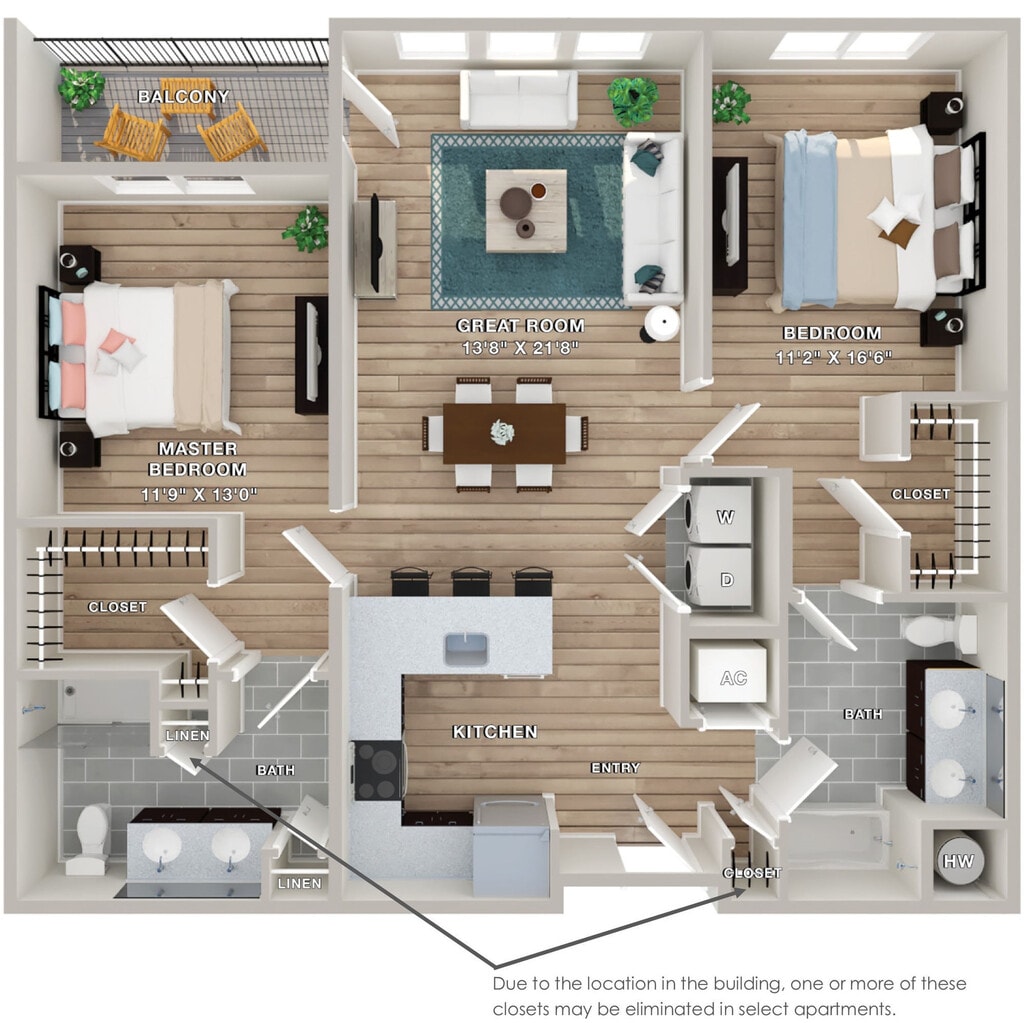 1 Dormitorio, 1 Baño, 820 pies²Disponible AhoraGalería del Modelo
