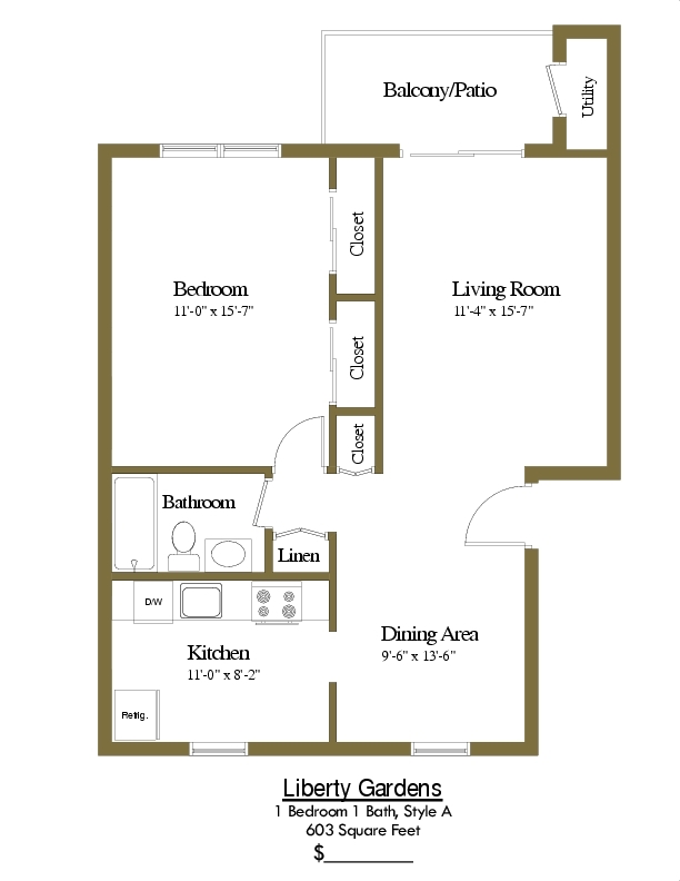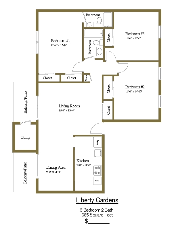 El rango de alquiler de Apartamentos 1 dormitorios a 3 dormitorios en Liberty Gardens Apartments van desde $1,257 a $1,401