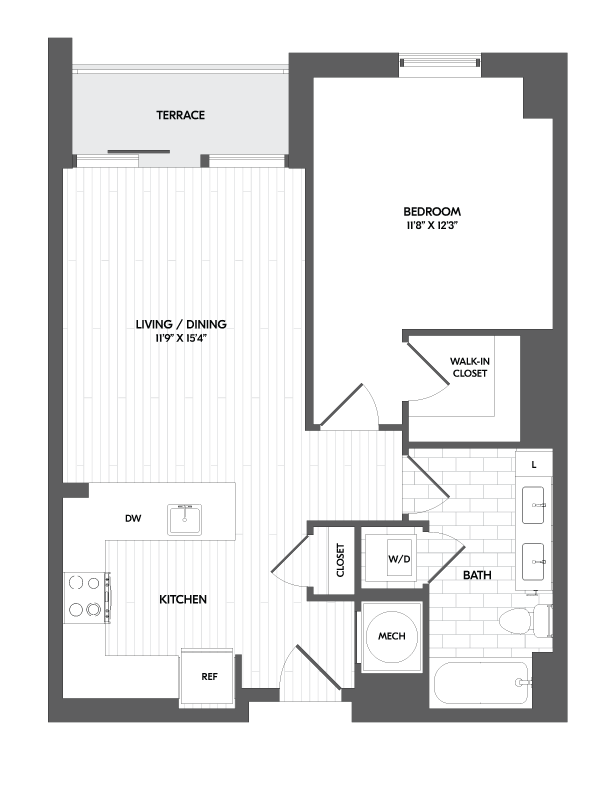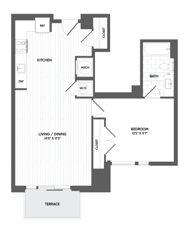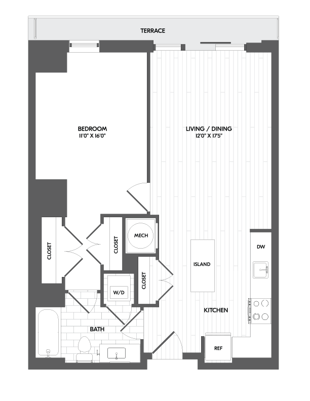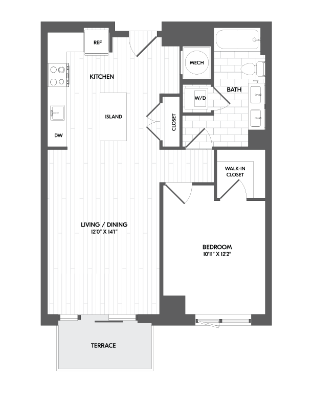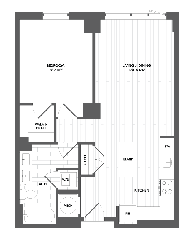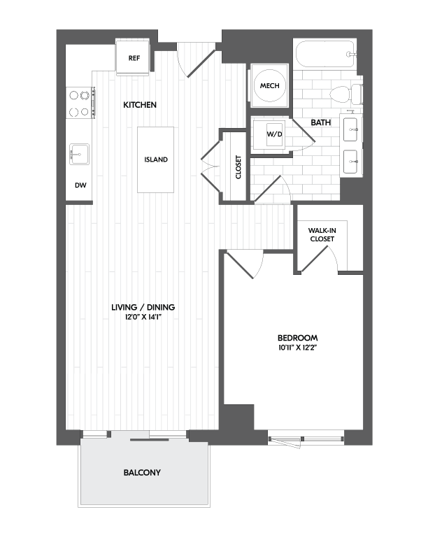Studio-0A - Plano 1 Unidad de apartamento: 1206Modelo de apartamento: Studio-0A$1,979Estudio, 1 Baño, 564 sq ftDisponible January 7, 2026![]()