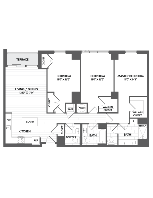 Modelo de apartamento: Studio-0BLlame para PreciosEstudio, 1 Baño, 531 sq ftNo Disponible![]()