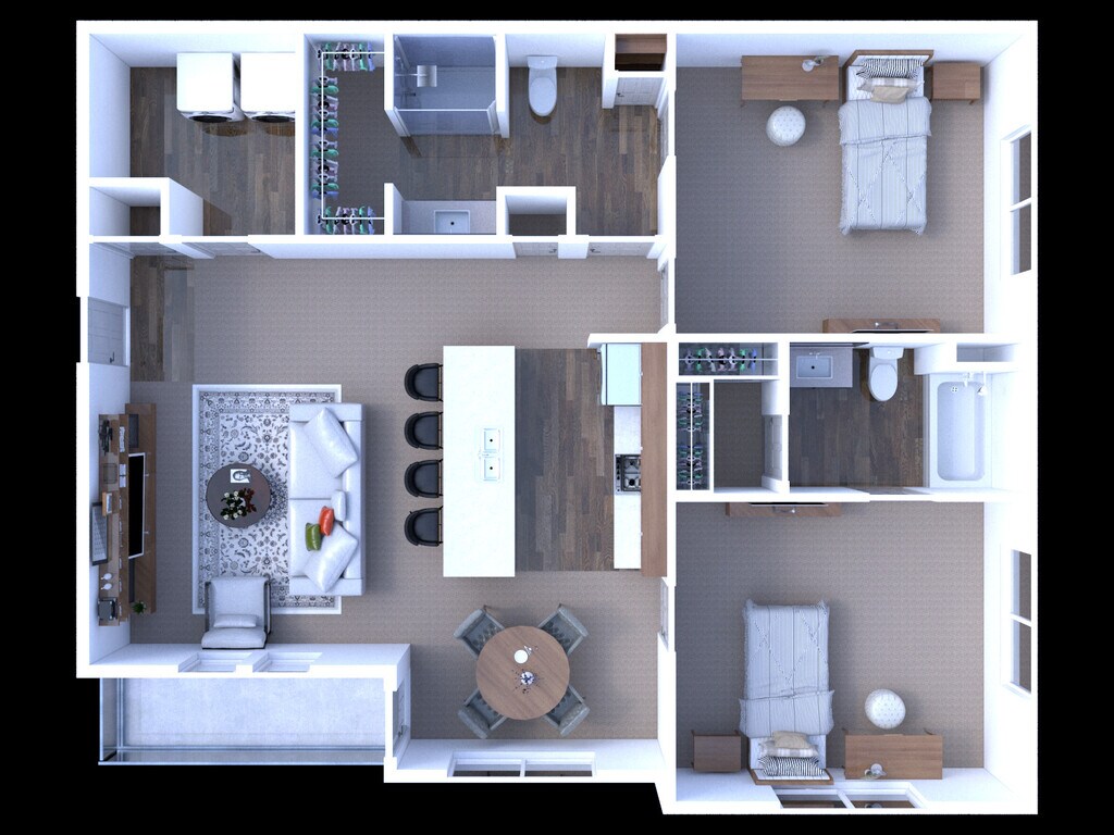 2 Dormitorios, 2 Baños, 1010 pies²Disponible AhoraGalería del Modelo
