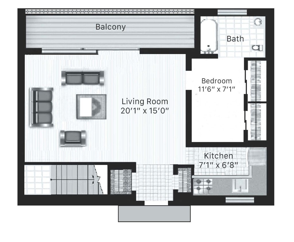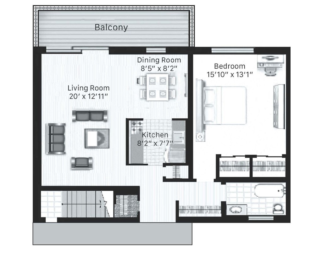 1 Dormitorio, 1 Baño, 825 pies²Disponible AhoraGalería del Modelo
