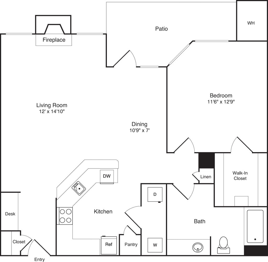Modelo de apartamento: ArlingtonLlame para Precios1 Dormitorio, 1 Baño, 651 sq ftNo DisponibleArlington - Plano 1 Chatham