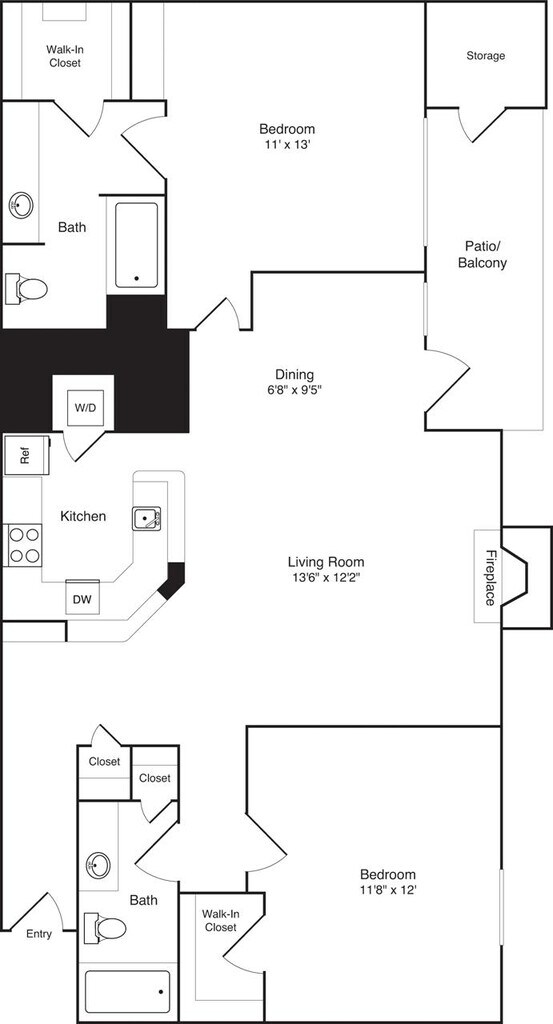 Modelo de apartamento: KingstonLlame para Precios2 Dormitorios, 2 Baños, 1411 sq ftNo DisponibleKingston - Plano 1 3 Dormitorios