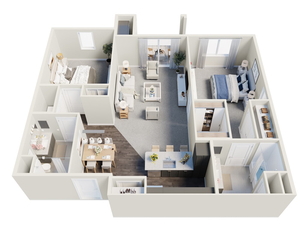 Modelo de apartamento: Model D2Desde $2,3501 Dormitorio, 1 Baño, 1030 sq ftNo Disponible![]()