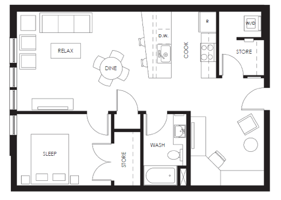 1 Dormitorio, 1 Baño, 716-790 pies²Disponible AhoraGalería del Modelo