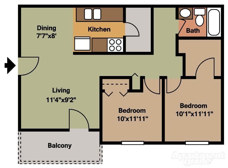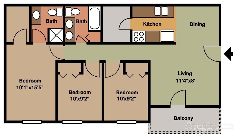 Modelo de apartamento: Three Bedroom3 Dormitorios, 2 Baños, 1100 sq ftDisponible Ahora![]()