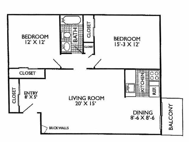 2 Dormitorios, 1 Baño, 950-980 pies²Galería del Modelo