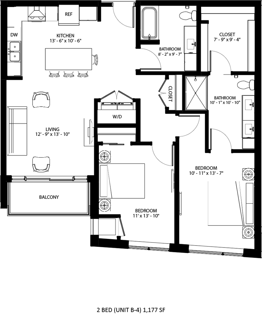 B1 - Plano 2 Unidad de apartamento: 203Modelo de apartamento: B1$1,9501 Dormitorio, 1 Baño, 796 sq ftDisponible AhoraPlano: B2