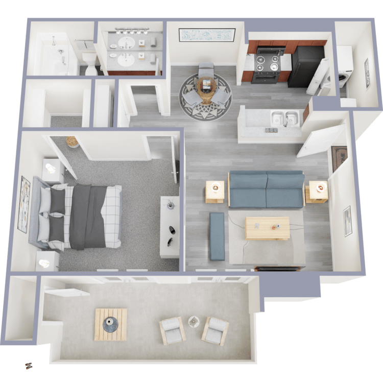 1 Dormitorio, 1 Baño, 715 pies²Disponible AhoraGalería del Modelo