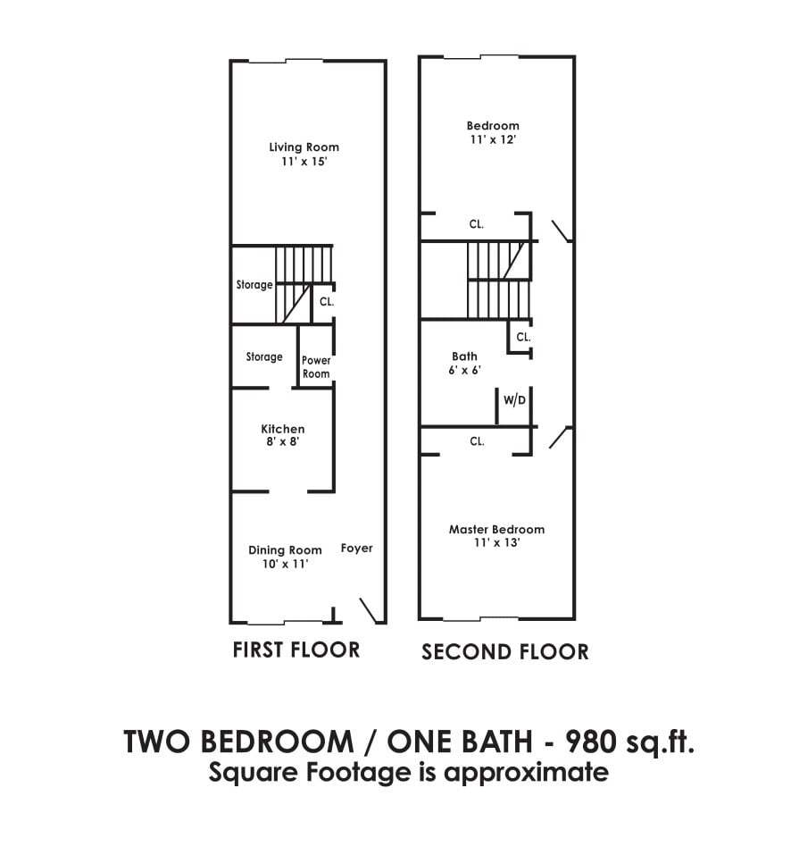 Two Bedroom 1.5 Bath Townhome - 980 sqft