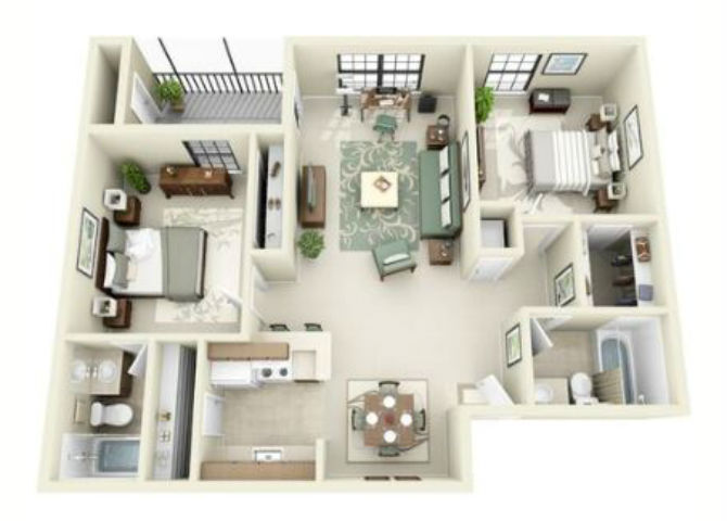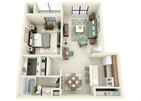 Modelo de apartamento: A3Desde $1,2291 Dormitorio, 1 Baño, 750 sq ftDisponible Ahora![]()
