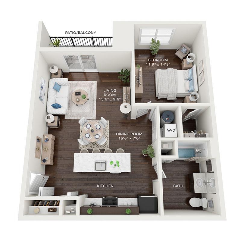 1 Dormitorio, 1 Baño, 709 pies²Galería del Modelo