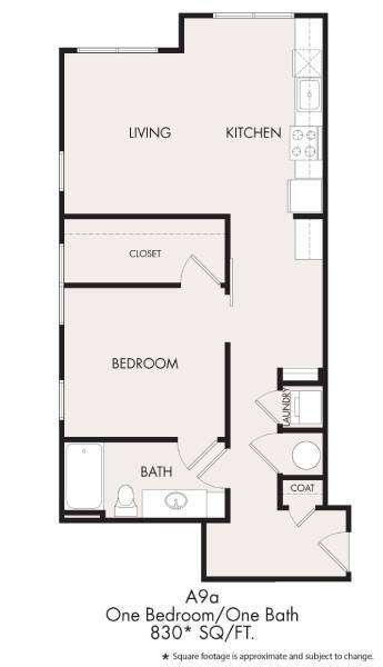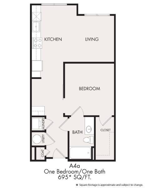 Modelo de apartamento: A4hDesde $1,4851 Dormitorio, 1 Baño, 660 sq ftDisponible Ahora![]()