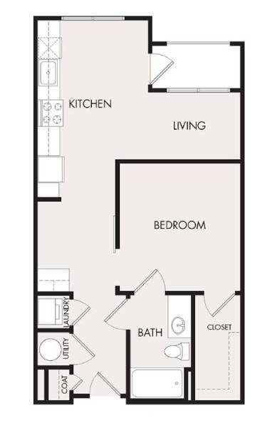 Estudio, 1 Baño, 590 pies²Disponible AhoraGalería del Modelo
