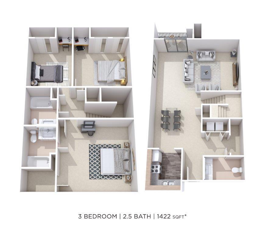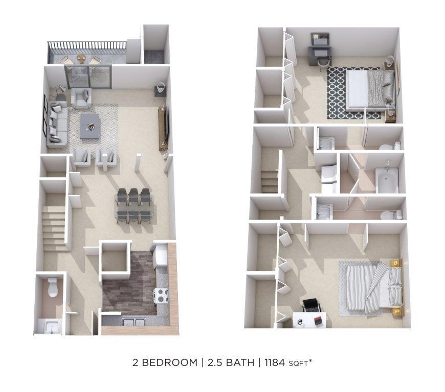 1 Dormitorio, 1 Baño, 714-810 pies²Disponible AhoraGalería del Modelo