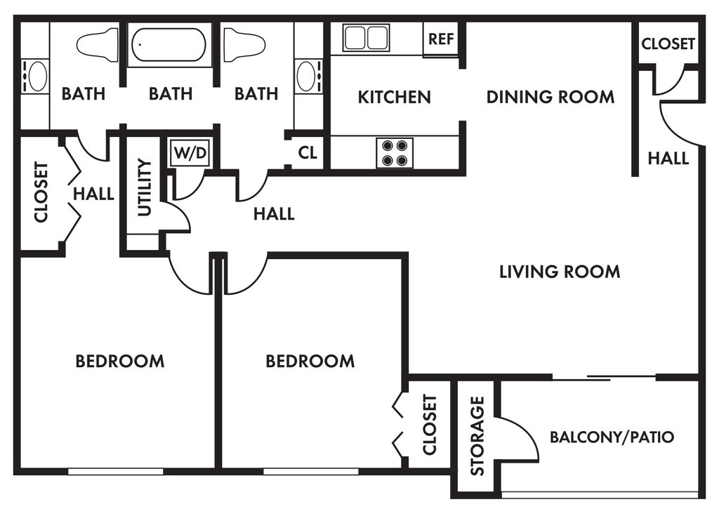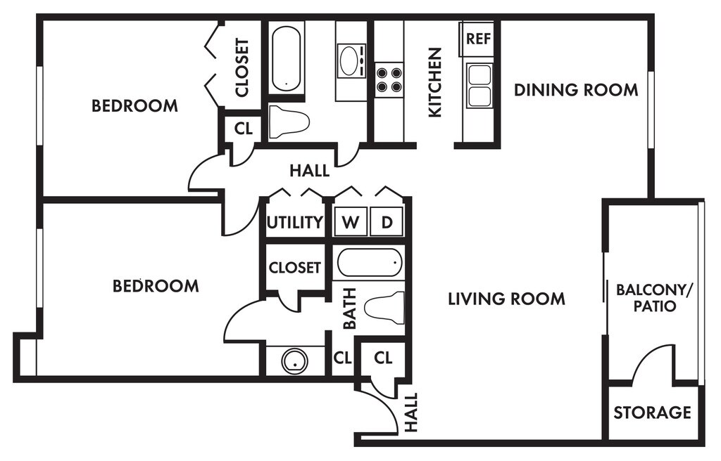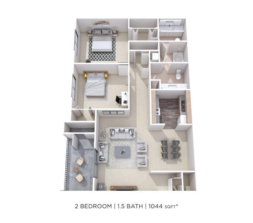 Modelo de apartamento: One Bedroom - 615 sqftDesde $1,0101 Dormitorio, 1 Baño, 615 sq ftDisponible Ahora![]()