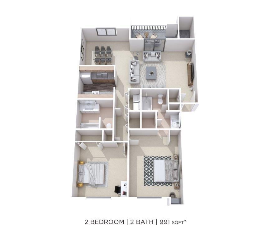 Modelo de apartamento: One Bedroom - 810 sqftDesde $1,1601 Dormitorio, 1 Baño, 810 sq ftDisponible Ahora![]()