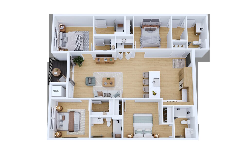 Modelo de apartamento: 201Desde $3,9804 Dormitorios, 4 Baños, 1376 sq ftDisponible August 1, 2026![]()