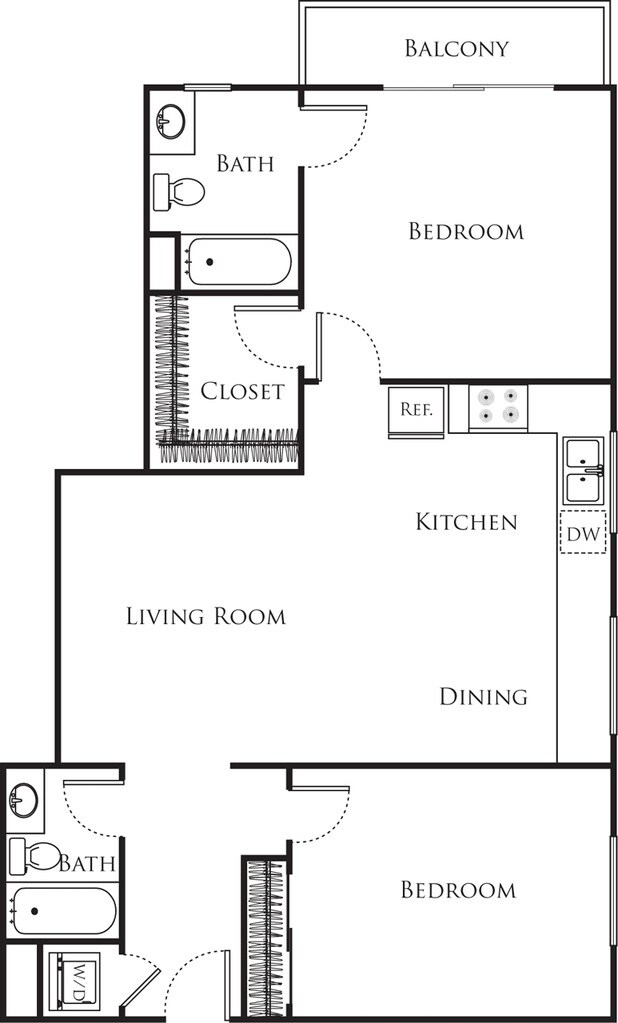 Modelo de apartamento: FP FDesde $2,8682 Dormitorios, 2 Baños, 990-1110 sq ftDisponible Ahora![]()