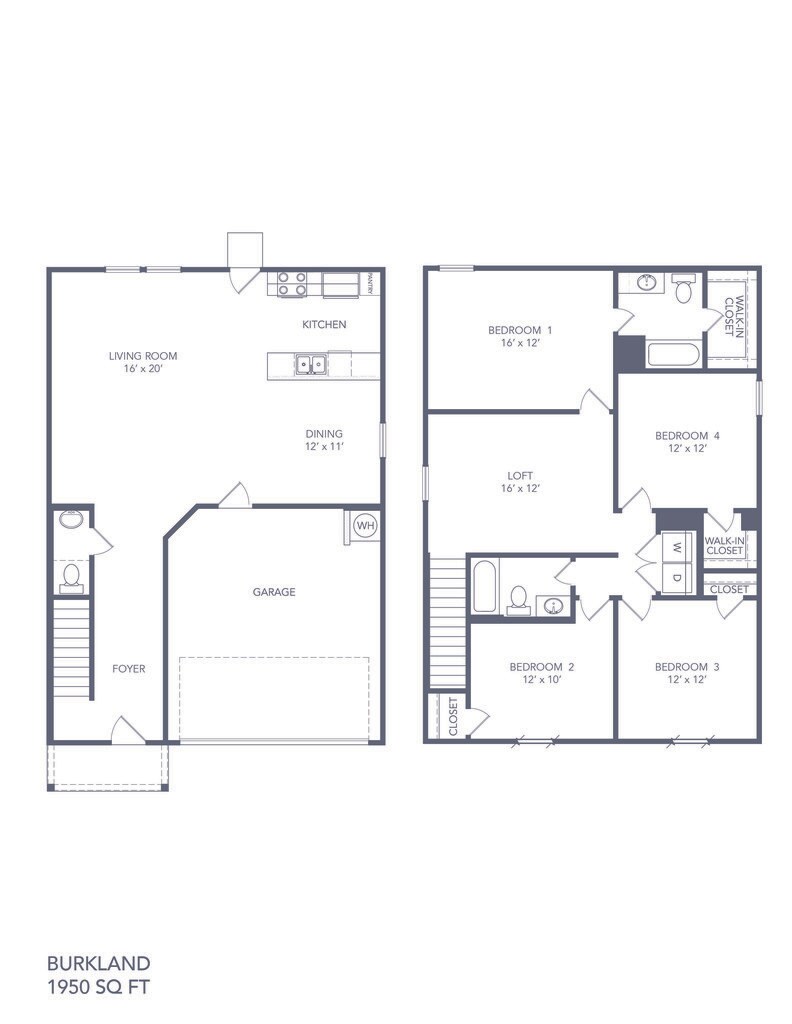 Modelo de apartamento: Burkland4 Dormitorios, 2 Baños, 1950 sq ftDisponible Ahora![]()