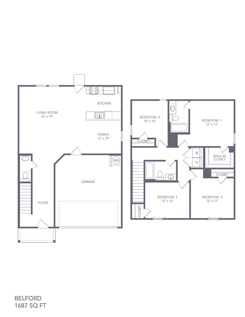 Belford - Plano 11 Unidad de apartamento: 112HHModelo de apartamento: Belford4 Dormitorios, 2.5 Baños, 1687 sq ftDisponible December 25, 2025
