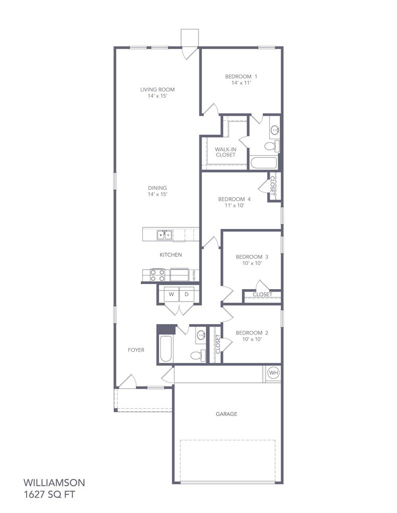 Williamson - Plano 2 Unidad de apartamento: 865PBModelo de apartamento: Williamson4 Dormitorios, 2 Baños, 1627 sq ftDisponible AhoraBurkland