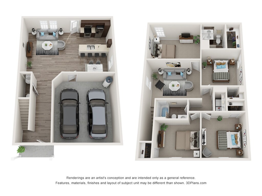 3 Dormitorios, 2 Baños, 1266 pies²Disponible AhoraGalería del Modelo