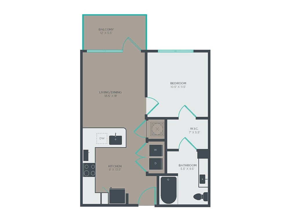 Modelo de apartamento: A2Desde $1,4721 Dormitorio, 1 Baño, 584 sq ftDisponible Ahora![]()