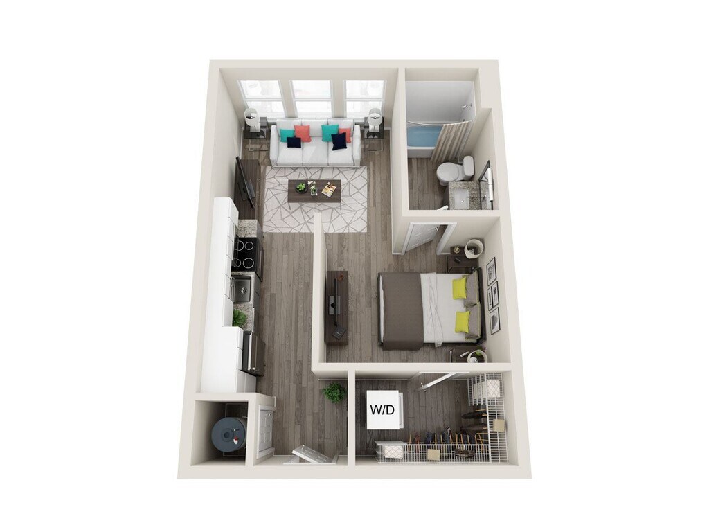 Modelo de apartamento: A1Desde $1,4951 Dormitorio, 1 Baño, 494 sq ftDisponible January 4, 2026PlanosFotos![]()