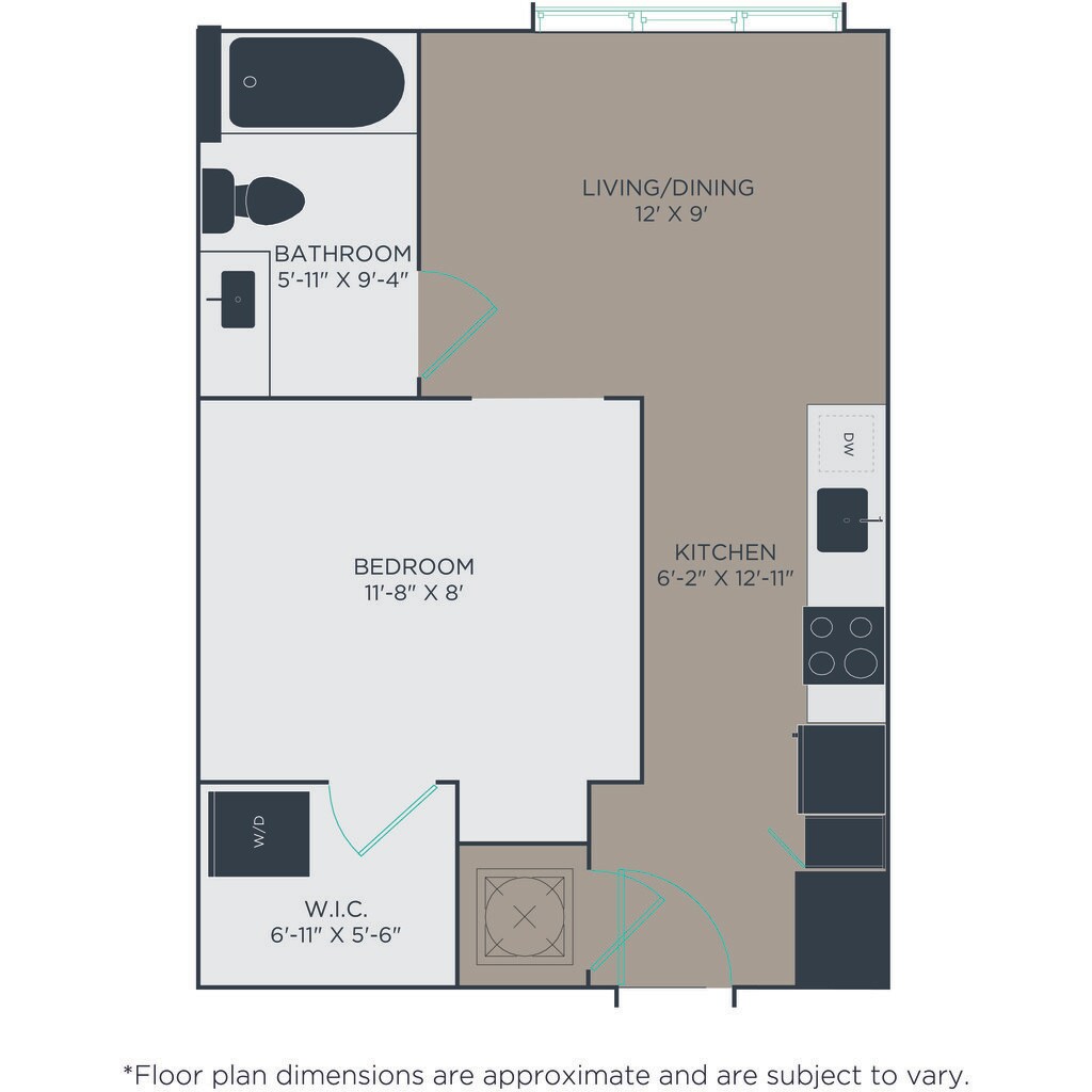 Modelo de apartamento: S1Desde $1,613Estudio, 1 Baño, 392 sq ftDisponible December 1, 2025![]()