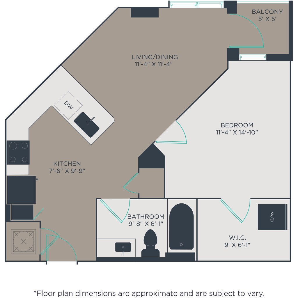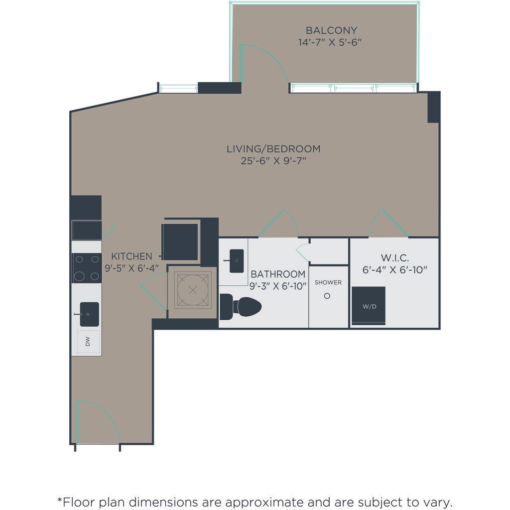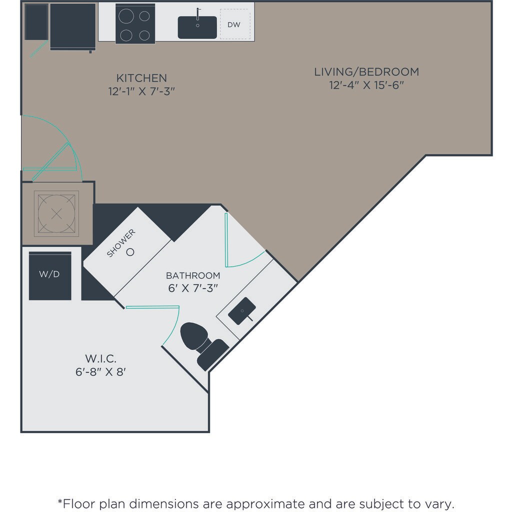 S6 - Plano 2 Unidad de apartamento: 714Modelo de apartamento: S6$1,689Estudio, 1 Baño, 440 sq ftDisponible AhoraPlano: S1