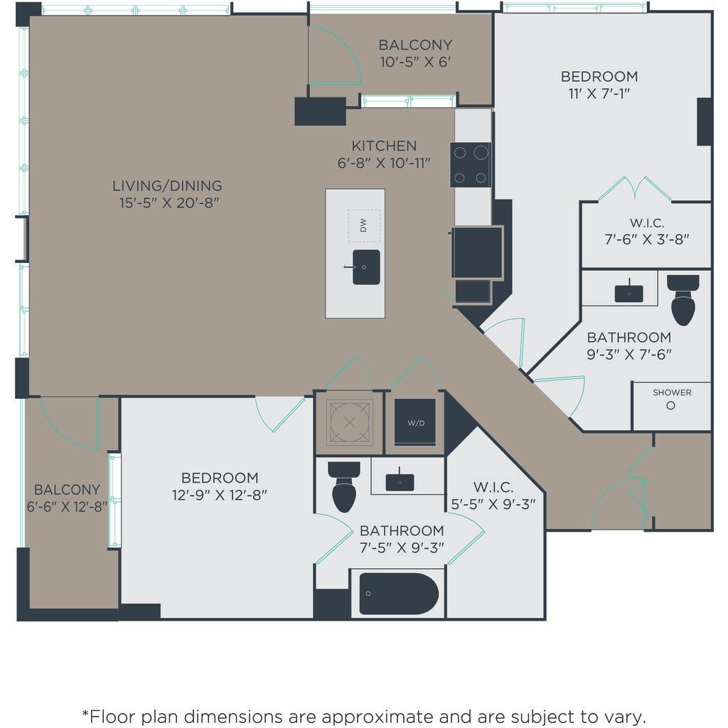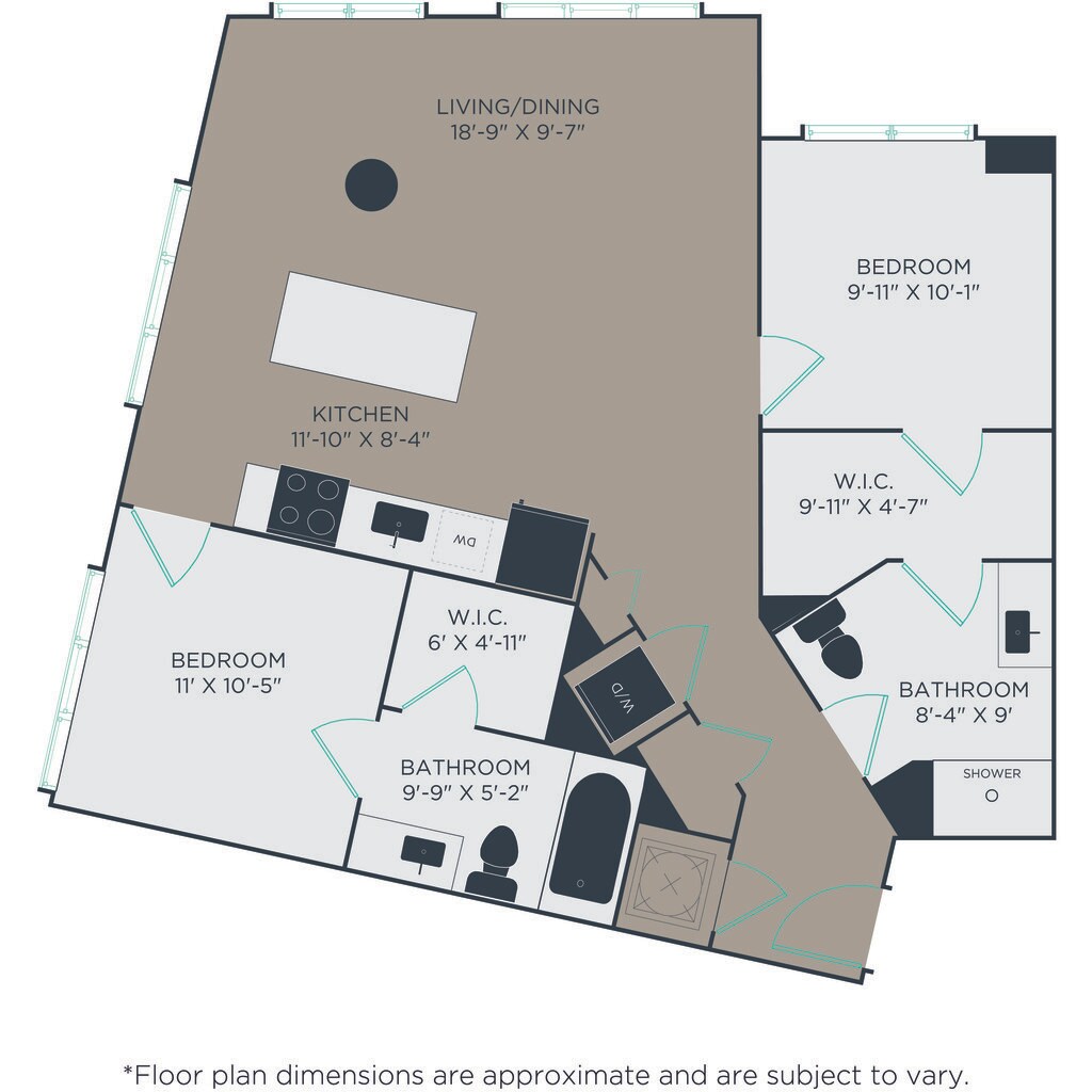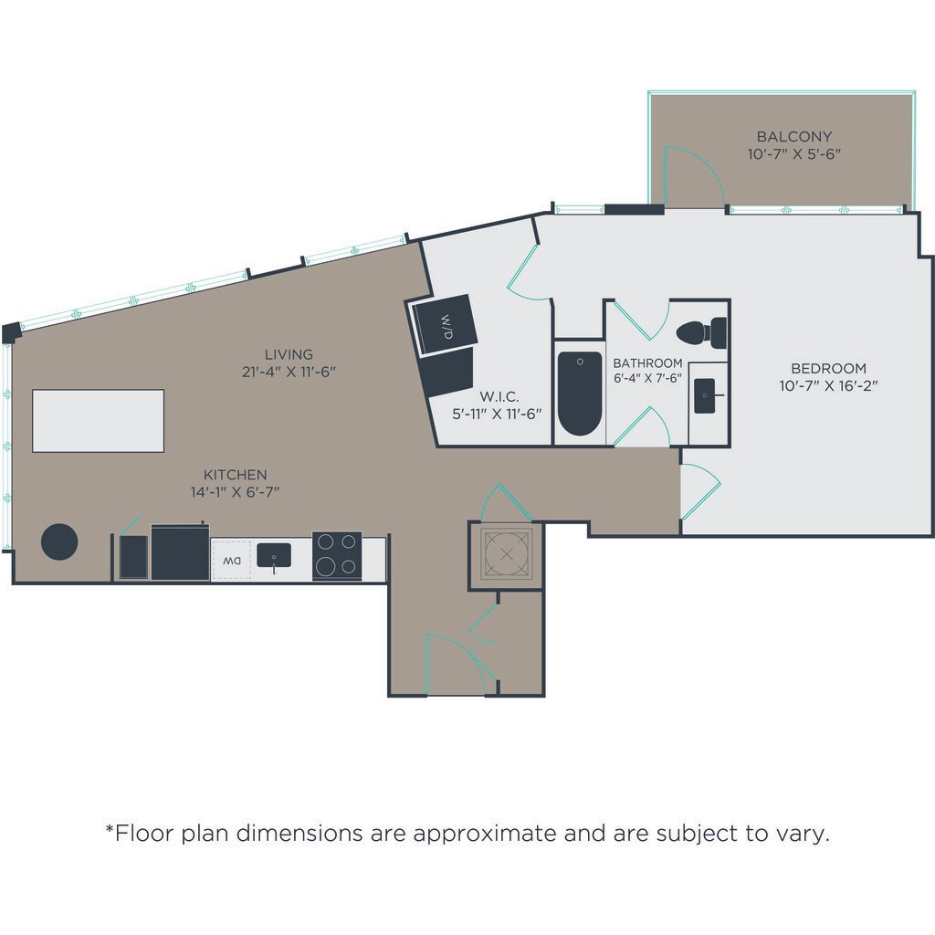 S6 - Plano 2 Unidad de apartamento: 714Modelo de apartamento: S6$1,689Estudio, 1 Baño, 440 sq ftDisponible AhoraPlano: S1