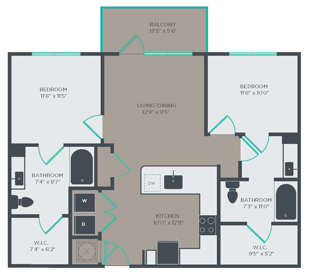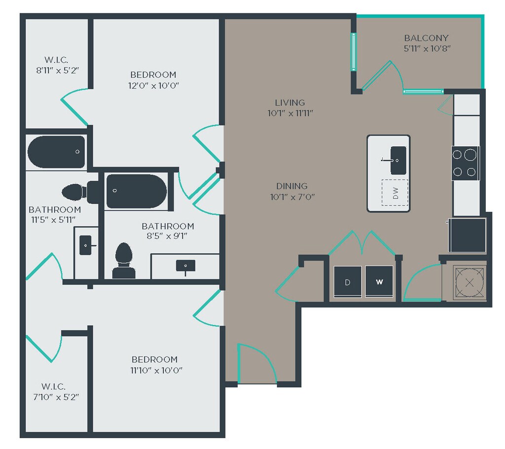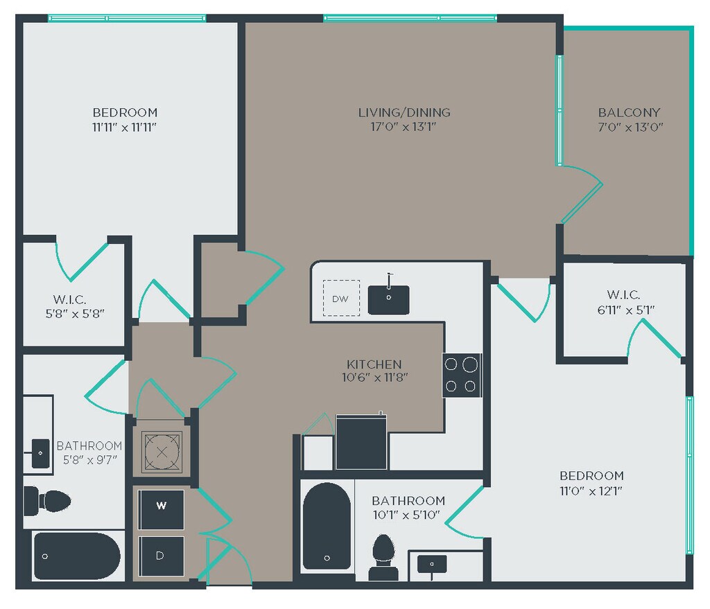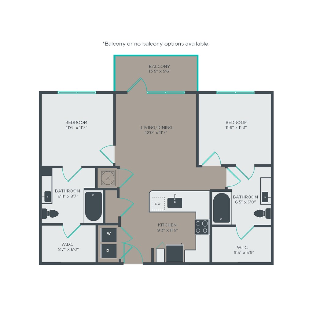 Modelo de apartamento: A2Desde $1,2501 Dormitorio, 1 Baño, 584 sq ftDisponible Ahora![]()