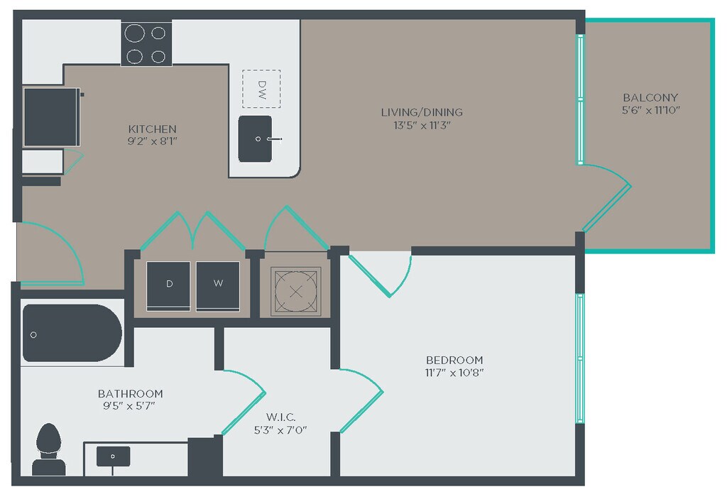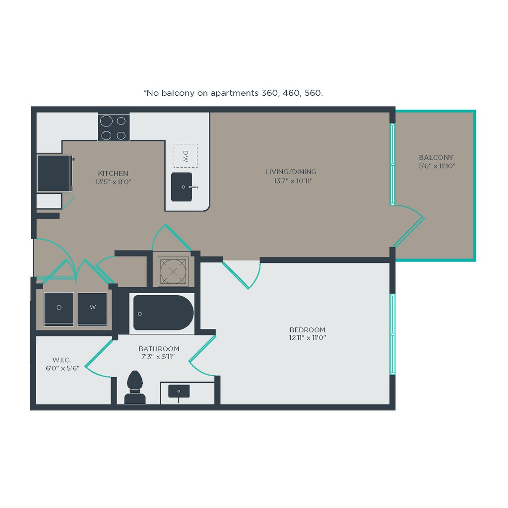 1 Dormitorio, 1 Baño, 584 pies²Disponible AhoraGalería del Modelo