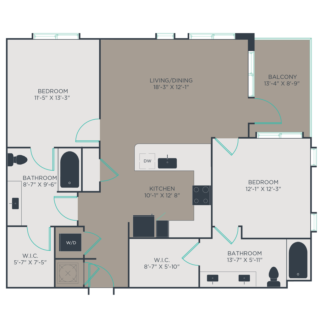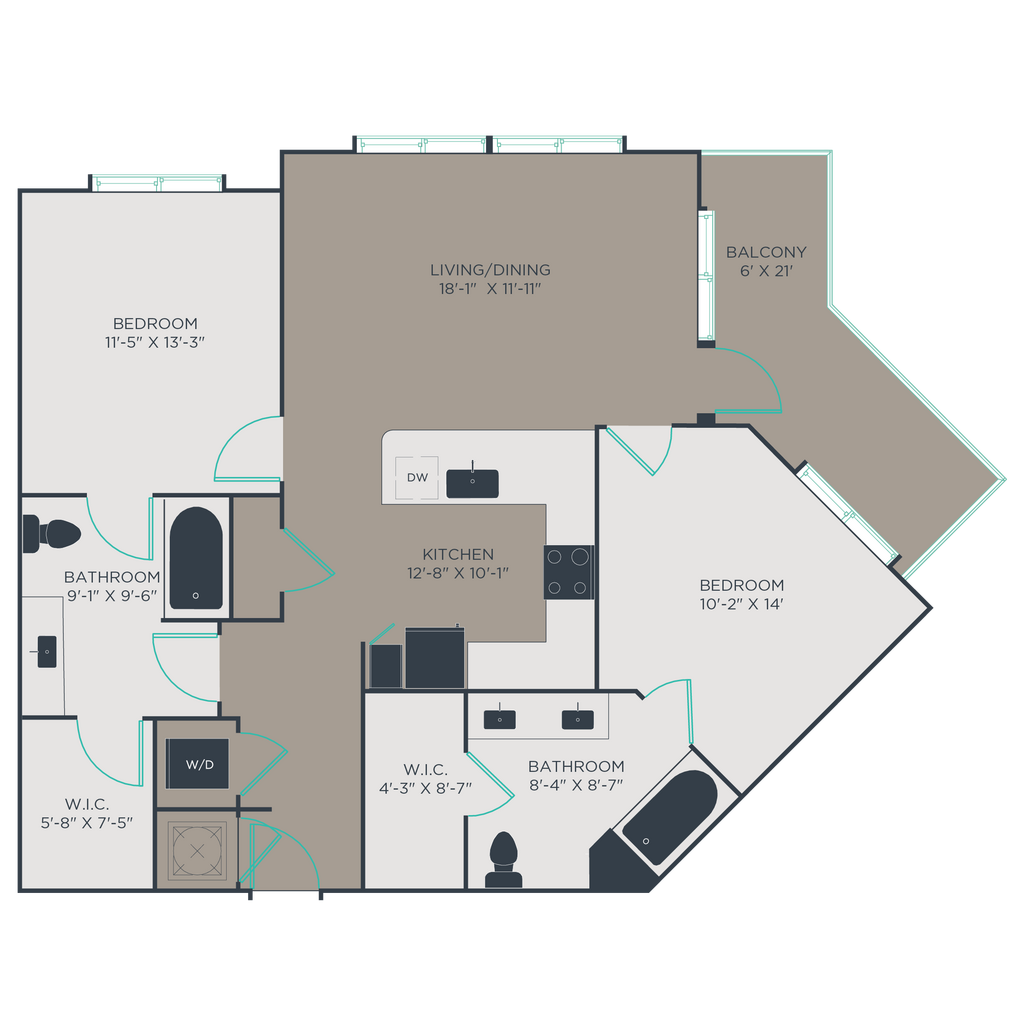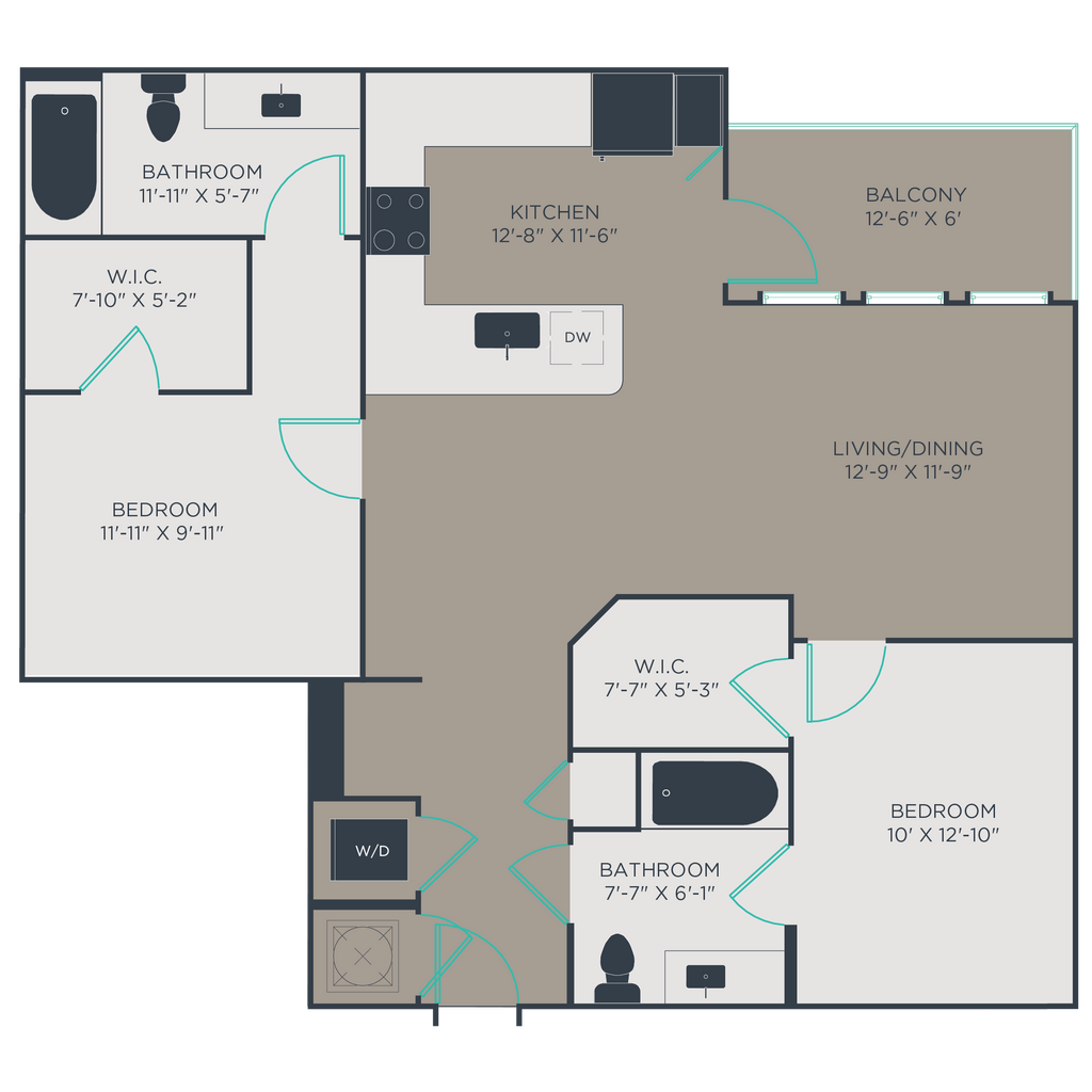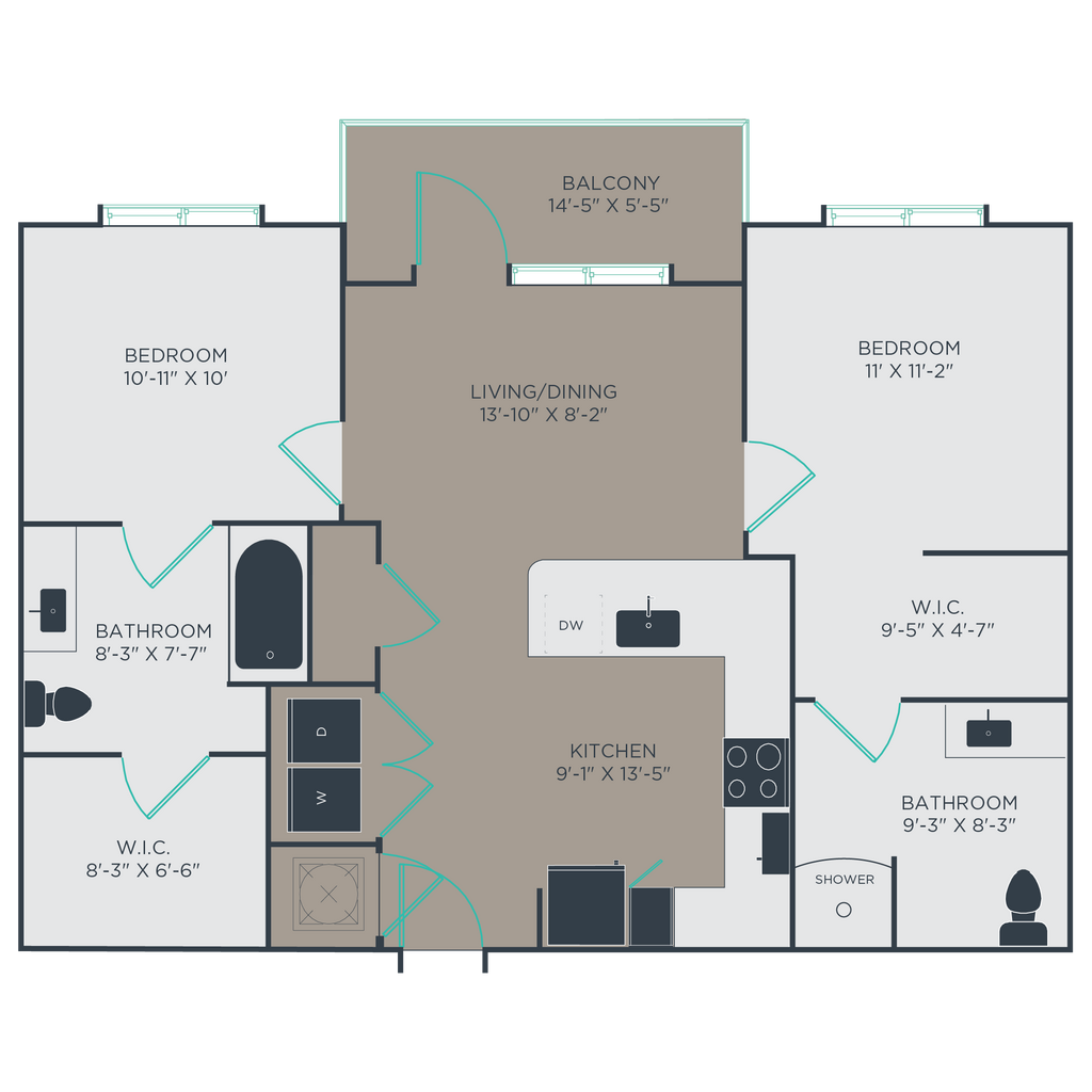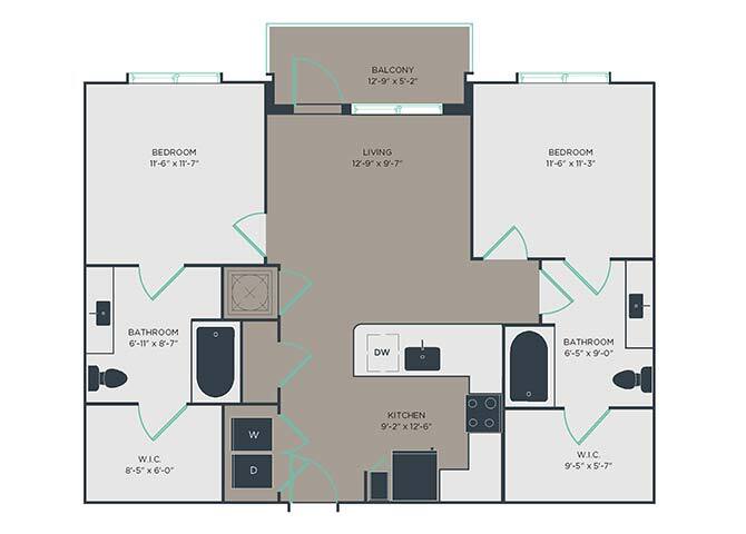 Modelo de apartamento: P2. A1-ADesde $1,1881 Dormitorio, 1 Baño, 497 sq ftDisponible Ahora![]()