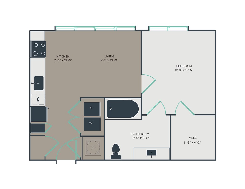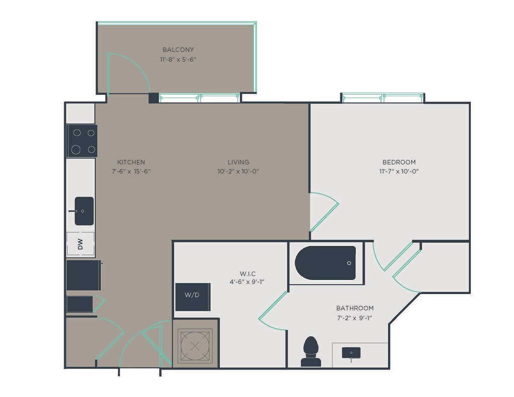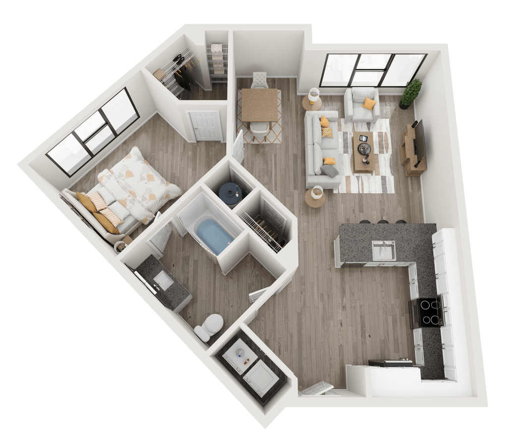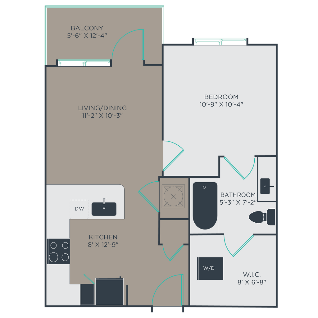 1 Dormitorio, 1 Baño, 496 pies²Disponible AhoraGalería del Modelo