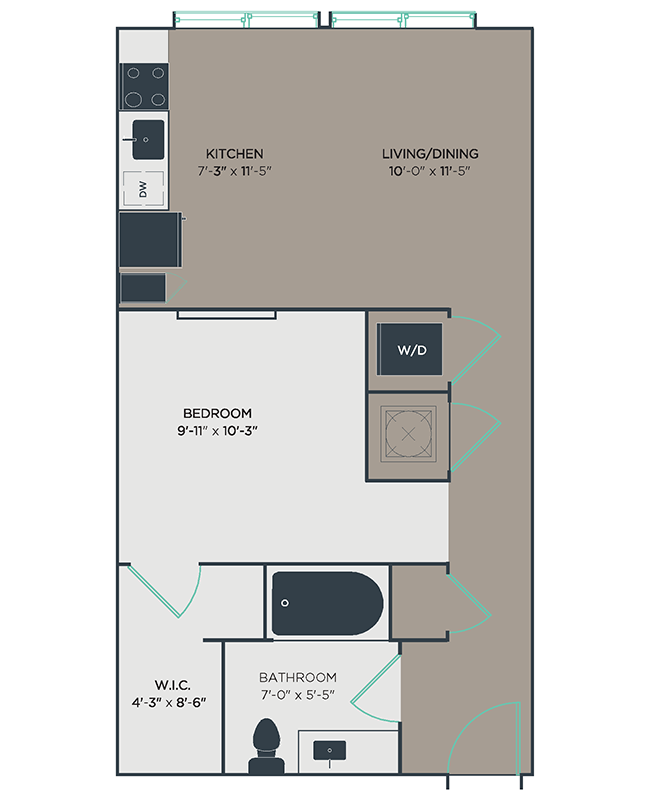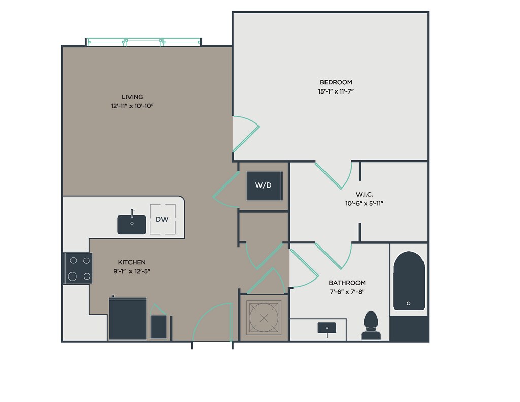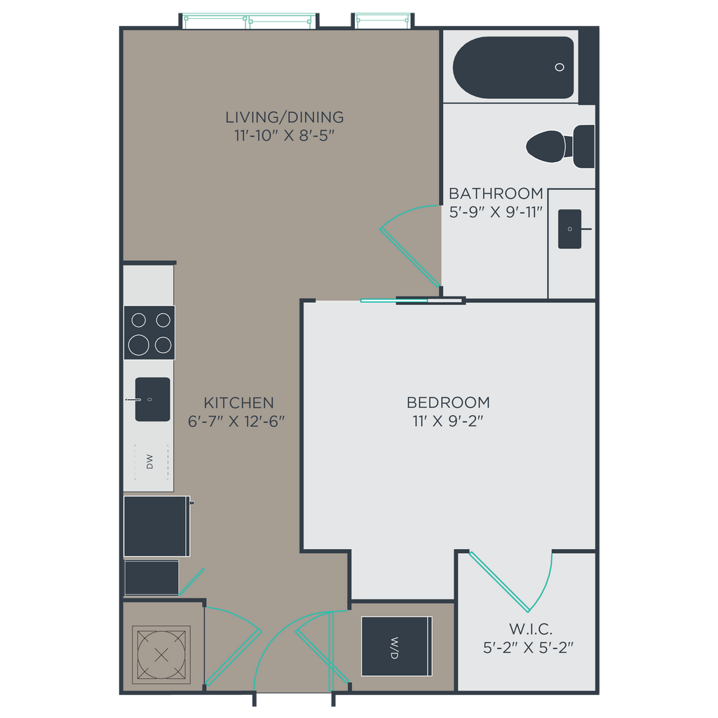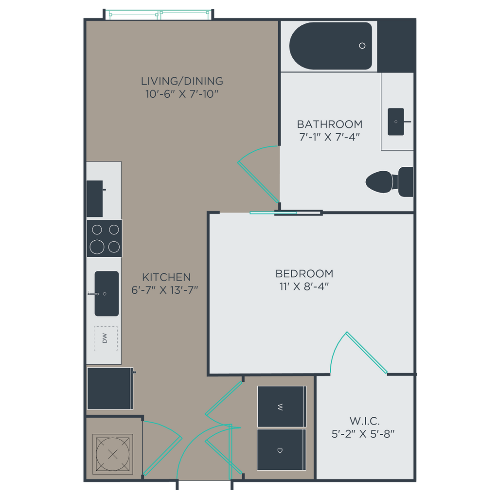 1 Dormitorio, 1 Baño, 496 pies²Disponible AhoraGalería del Modelo