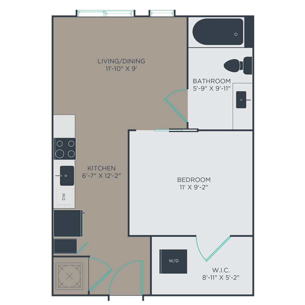 Modelo de apartamento: P2. S1-ADesde $1,120Estudio, 1 Baño, 362 sq ftDisponible Ahora![]()