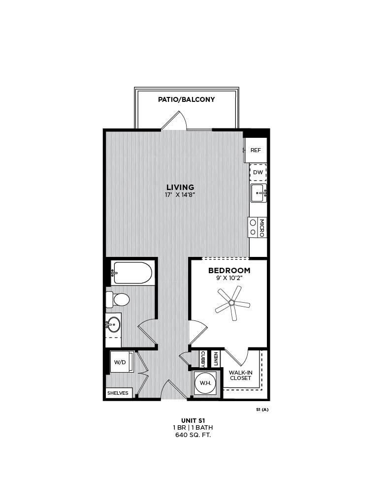 Modelo de apartamento: JadeLlame para Precios1 Dormitorio, 1 Baño, 640 sq ftNo Disponible![]()