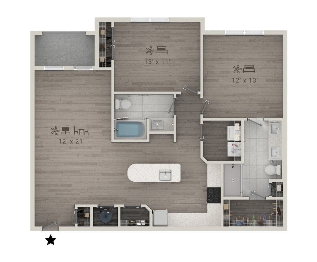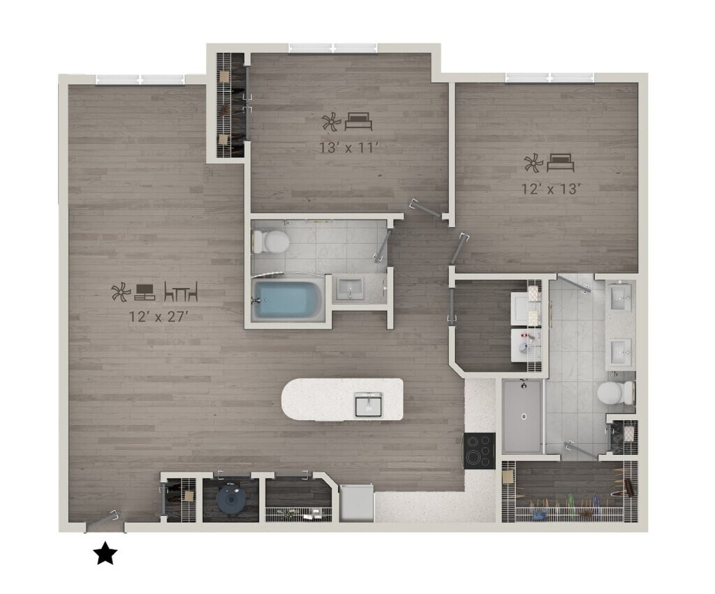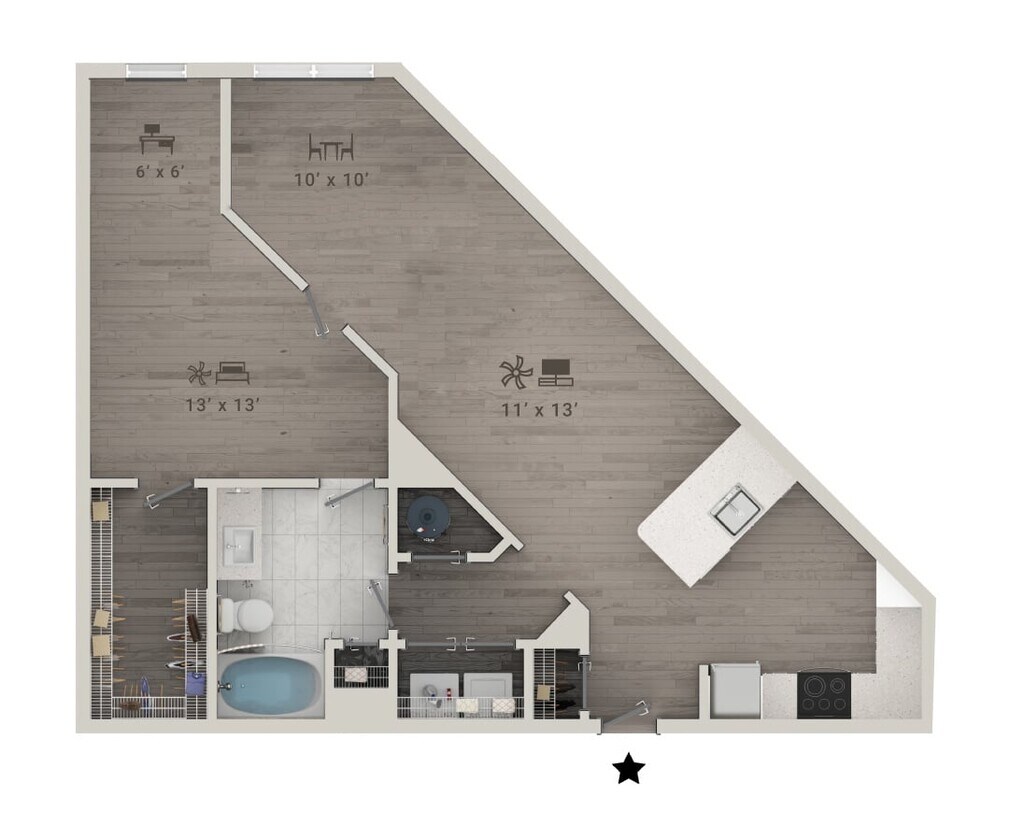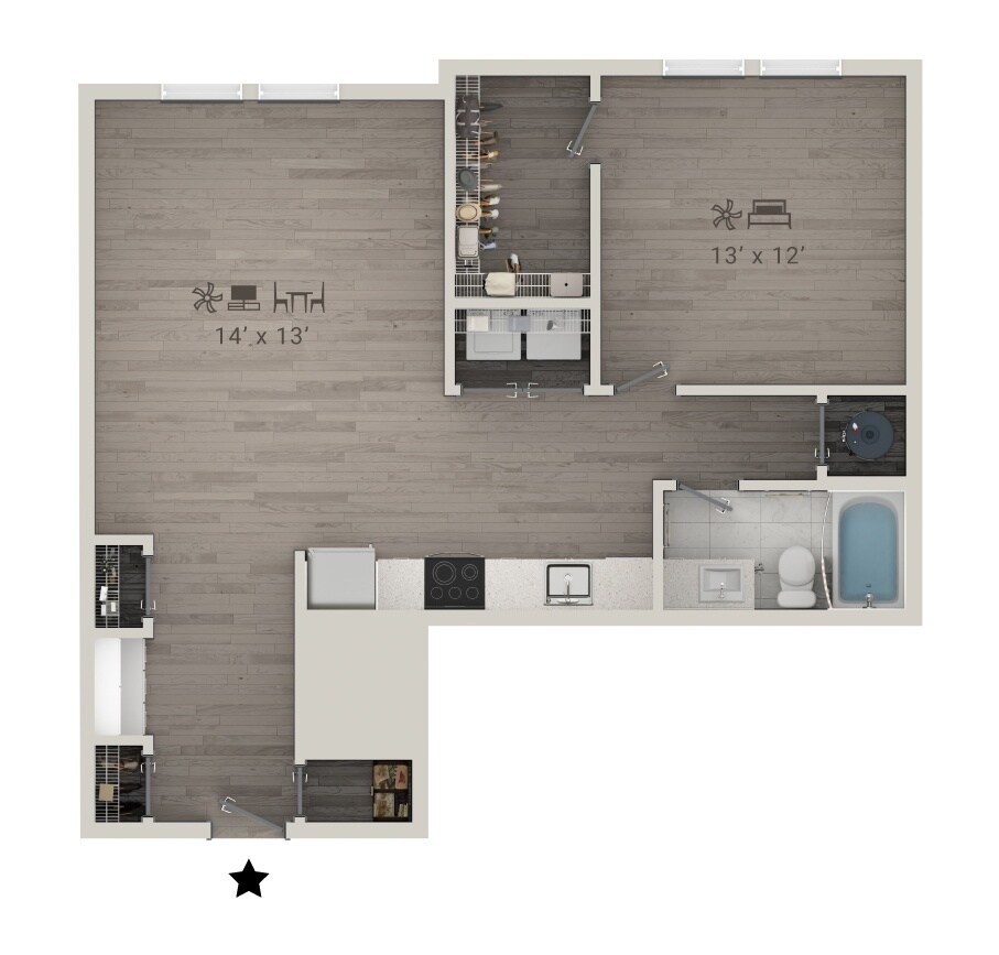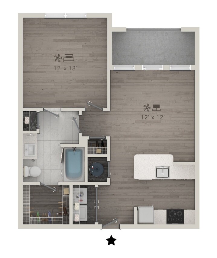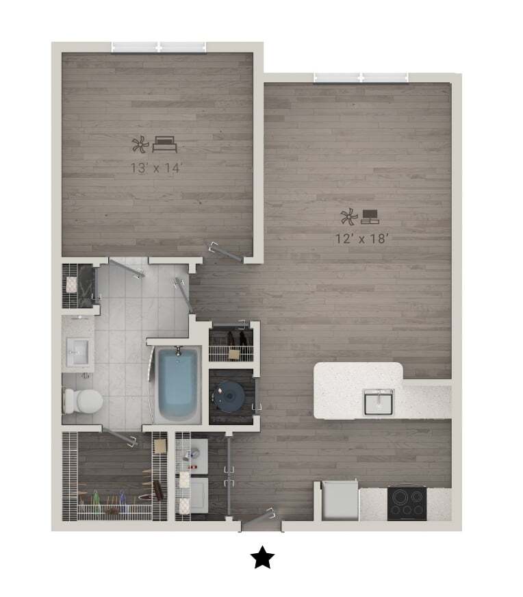 Estudio, 1 Baño, 589 pies²Disponible AhoraGalería del Modelo