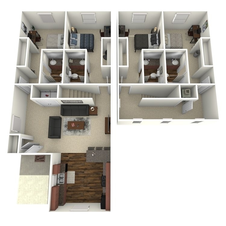Modelo de apartamento: Greys Peak4 Dormitorios, 4 Baños, 1064 sq ftDisponible Ahora![]()