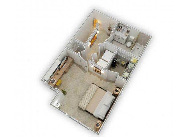 1 Dormitorio, 1 Baño, 745 pies²Disponible AhoraGalería del Modelo