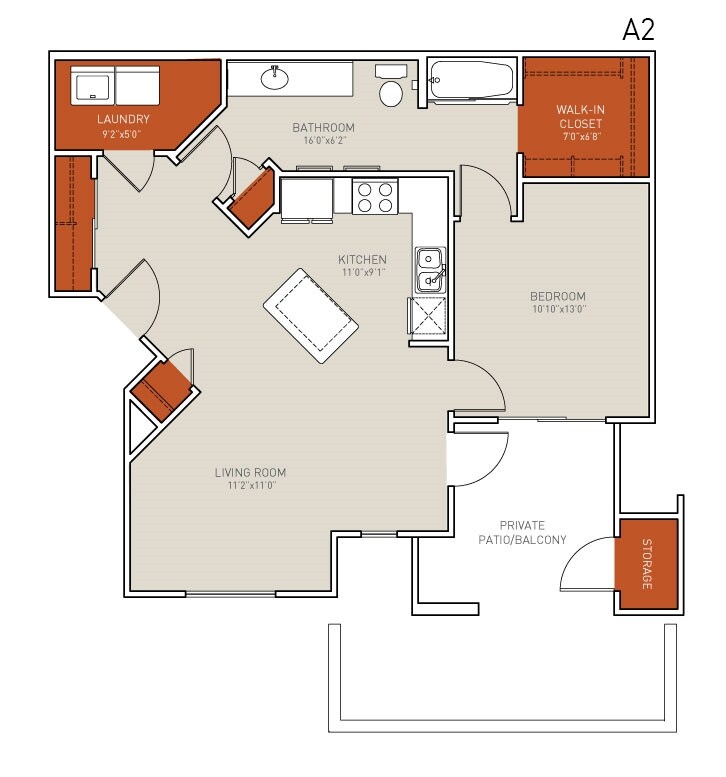 Modelo de apartamento: A2 Barrier Free1 Dormitorio, 1 Baño, 820 sq ftNo Disponible![]()