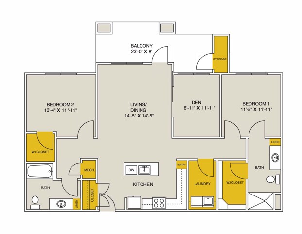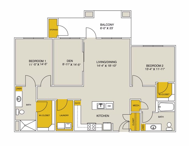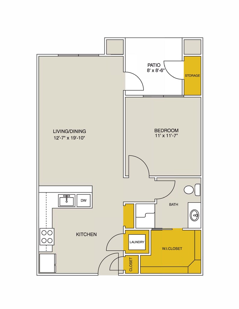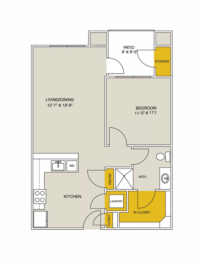 1 Dormitorio, 1 Baño, 675 pies²Disponible AhoraGalería del Modelo